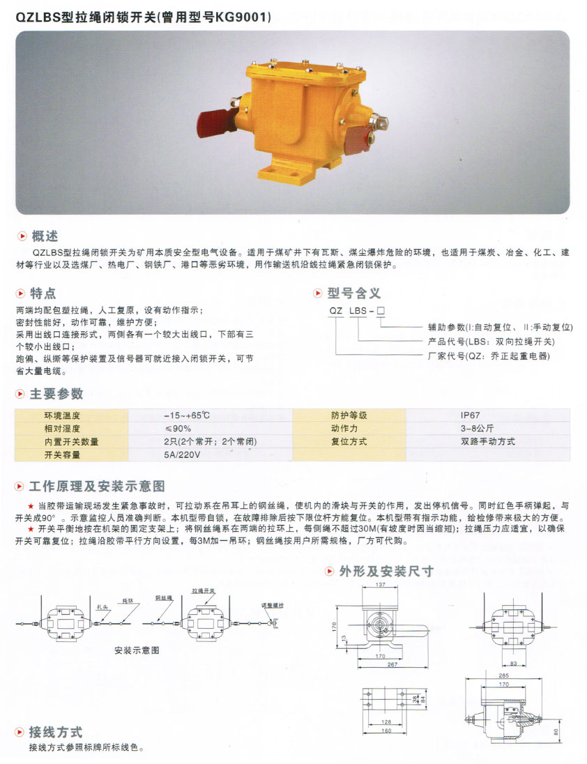 當(dāng)前位置:主頁 > 產(chǎn)品中心 > 輸送帶保護(hù)系列 > QZLBS型拉繩閉鎖開關(guān)