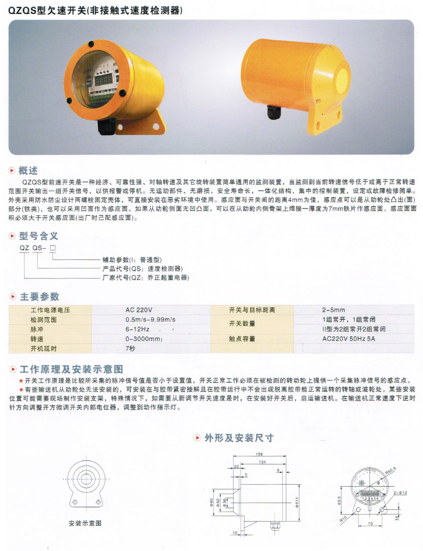 QZQS型欠速開(kāi)關(guān)(非接觸式速度檢測(cè)器)